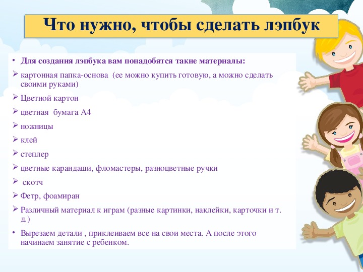 придумать, как в лэпбуке будет представлен каждый из пунктов плана.