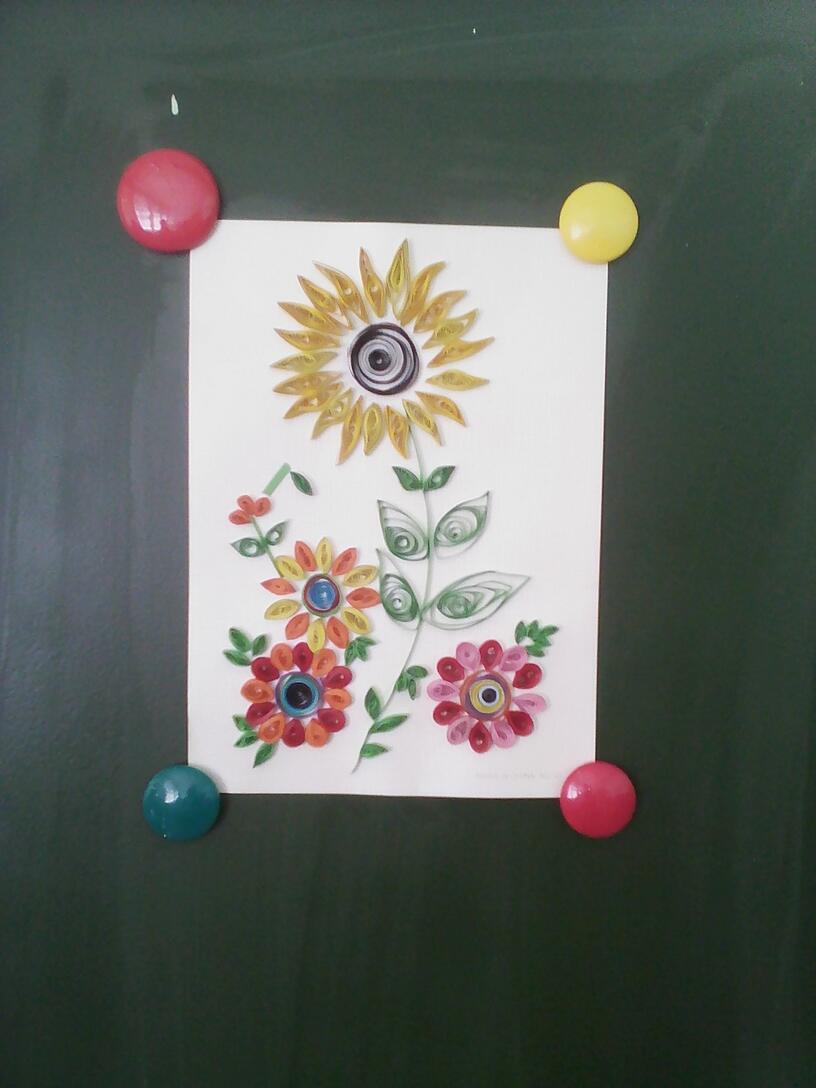 Квиллинг-одно из направлений в рукодельном мастерстве. Данное направление очень популярно у взрослых и детей школьного и подросткового возраста. с помощью квиллинга можно создавать объемные картины и поделки. Данная поделка сделана в технике квиллинга-красочное панно, на котором изображены красочные и изящные цветы.