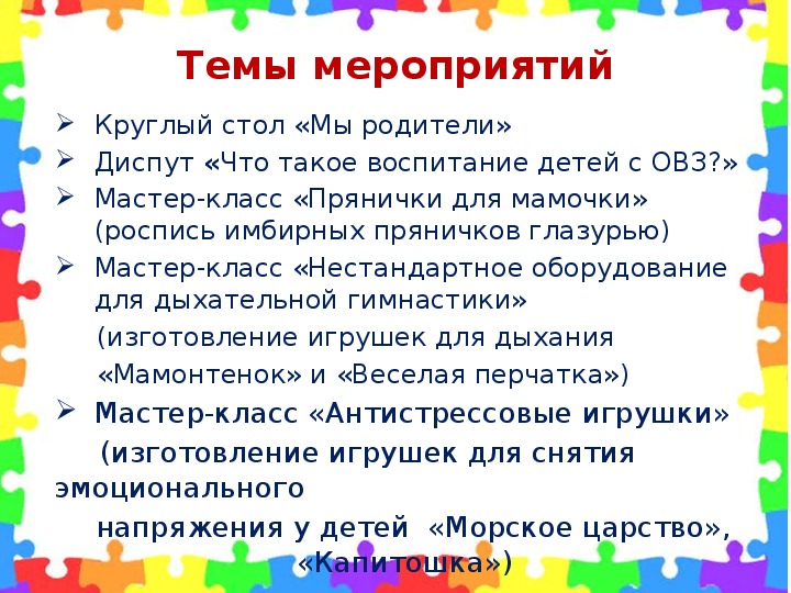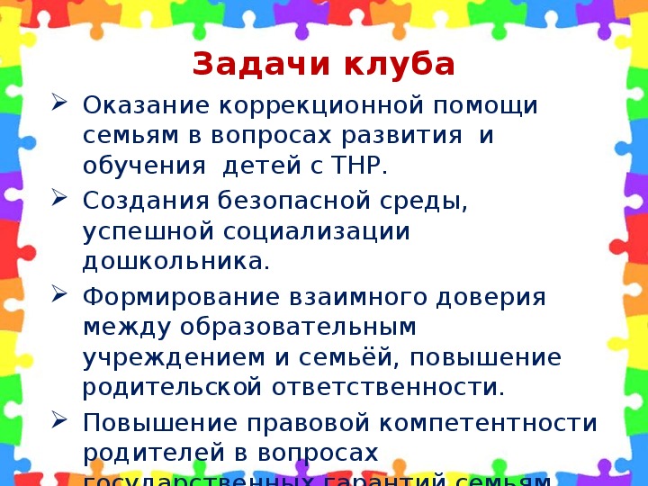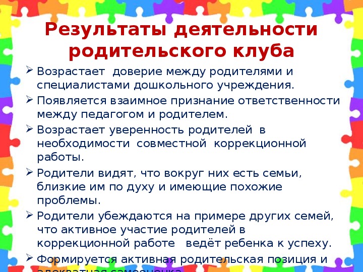 В презентации представлен практический опыт партнерства родителей и детей с ОВЗ, через организацию детско-родительского клуба. Какие проблемы и задачи возникают при организации родителей и детей с ОВЗ. Как в правильном направлении решать возникшие трудности. Примерные темы мастер-классов и диспутов. Фотоматериал проведенных мастер-классов.
