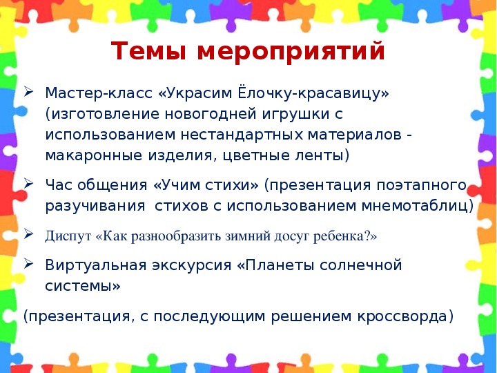 Диспут «Как разнообразить зимний досуг ребенка?»