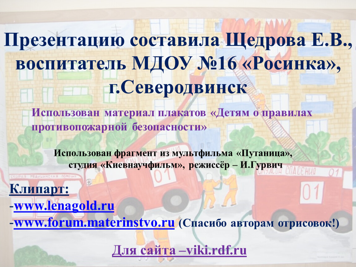 Использован материал плакатов «Детям о правилах противопожарной безопасности»