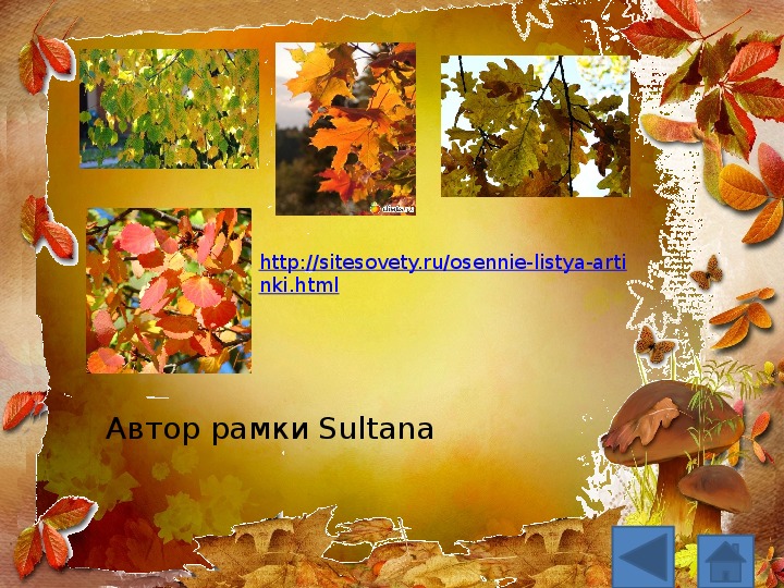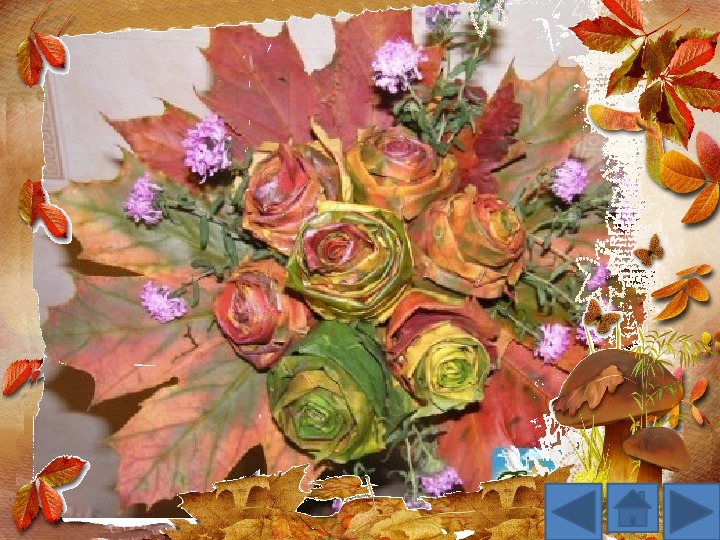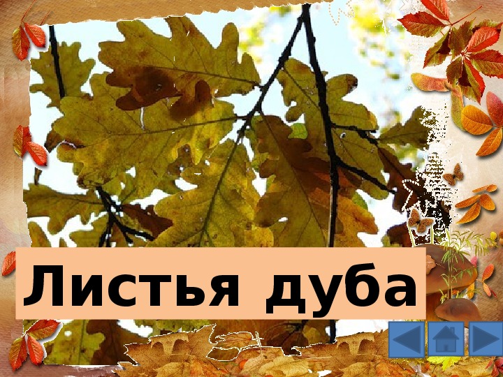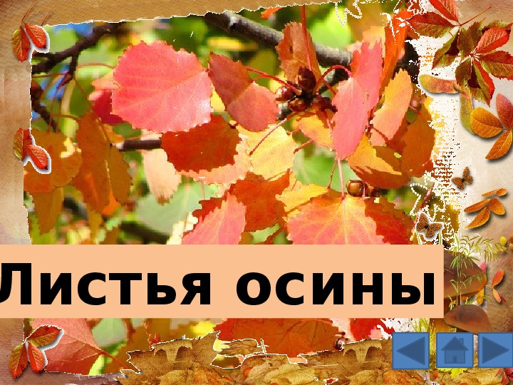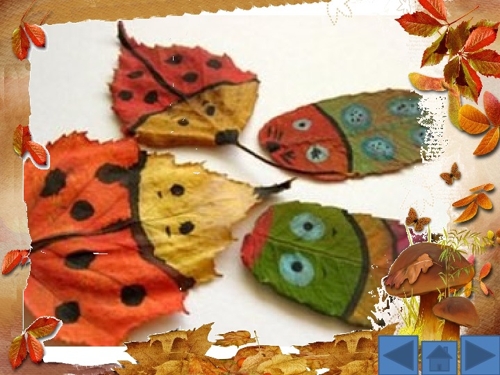 Презентация "Осенние листья"содержит в себе три раздела: листья разных деревьев, аппликации и поделки из листьев. Удобна в использовании, так как добавлены клавиши управления. Можно использовать на уроках окружающего мира, технологии и во внеурочной деятельности. Для детей дошкольного и младшего школьного возраста.Презентация "Осенние листья"содержит в себе три раздела: листья разных деревьев, аппликации и поделки из листьев.
