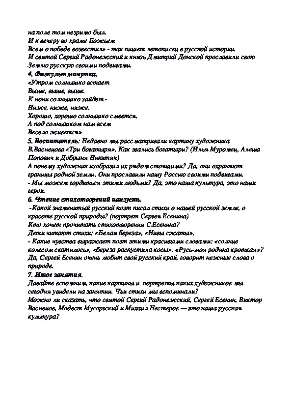 особенностях быта, о подвигах русских богатырей у детей формируются