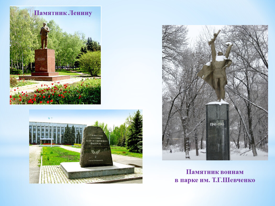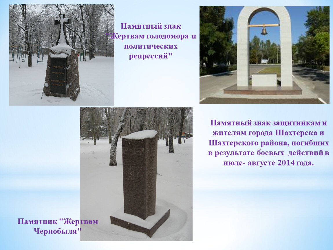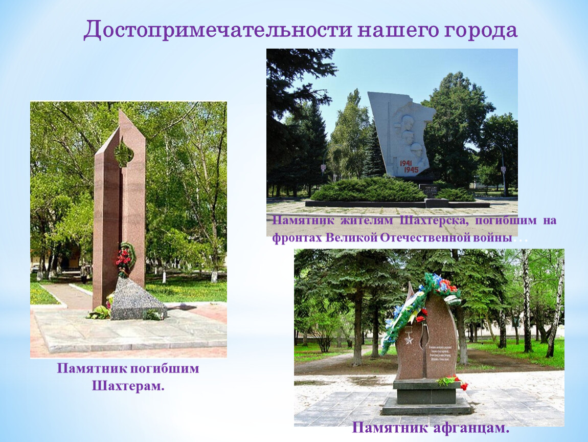 Продолжать знакомить с достопримечательностями и историей города Шахтёрска.