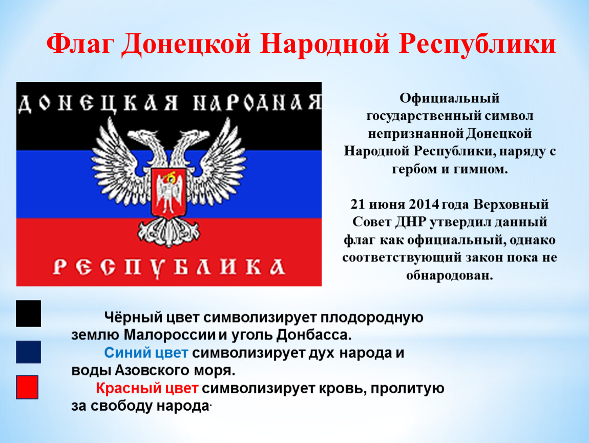 Официальный государственный символ непризнанной Донецкой Народной Республики, наряду с гербом и гимном.