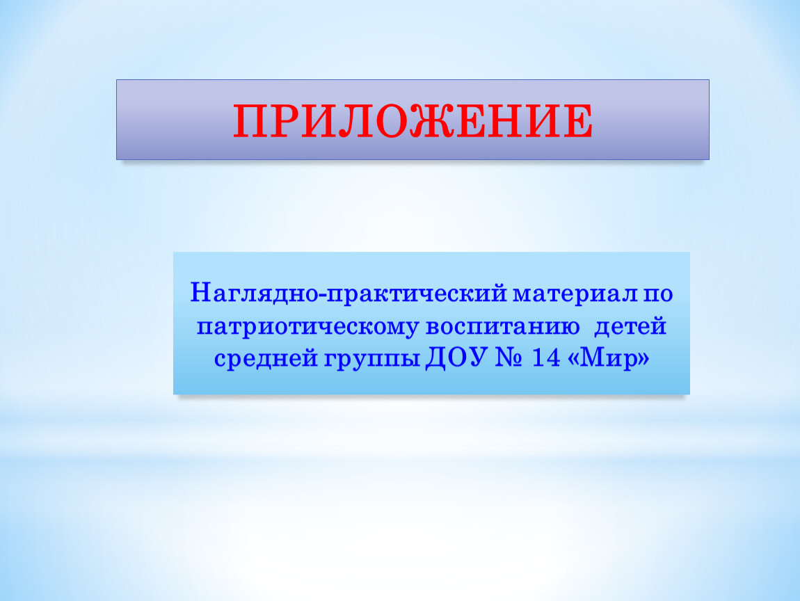 Наглядно-практический материал по патриотическому воспитанию детей средней группы ДОУ № 14 «Мир»