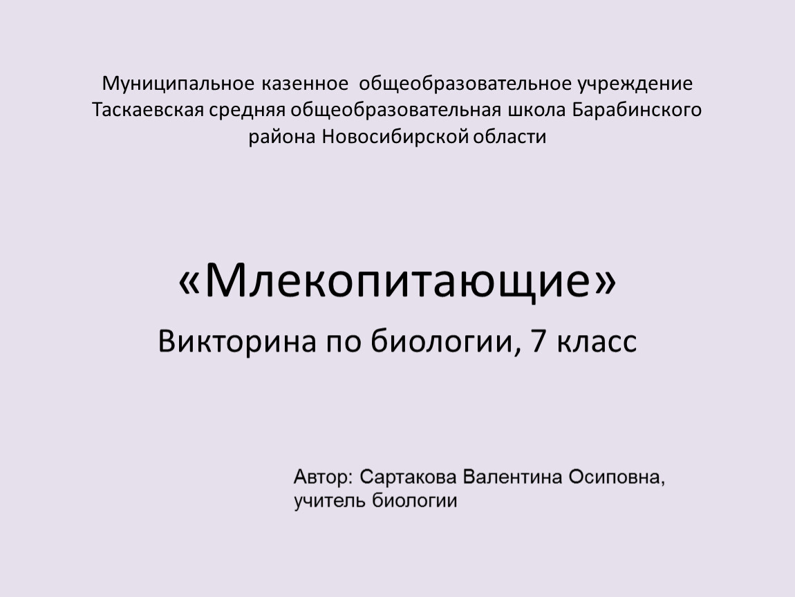 Автор: Сартакова Валентина Осиповна, учитель биологии