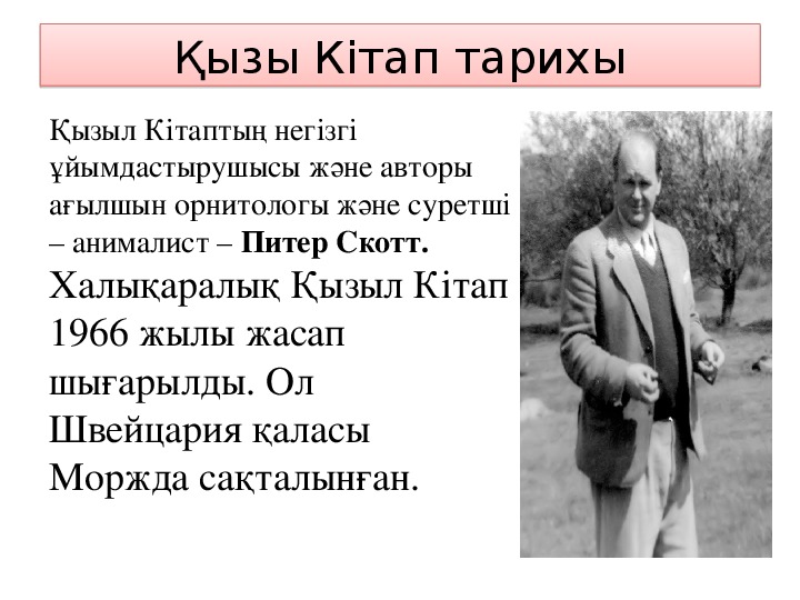 5 класс Жараталыстану пәні бойынша "Қызыл кітап" тақырыбына арналған презентация жұмысы. Бұнда ең алғаш Қызыл кітап қашан қай қалада пайда болды және оның маңызы қандай екені көрсетілген. Сонымен қатар Қазақстанның Қызыл Кітабы қандай категорияларға жіктелген және қандай өсімдіктер мен жануарлар енгізілгені туралы айтылған.