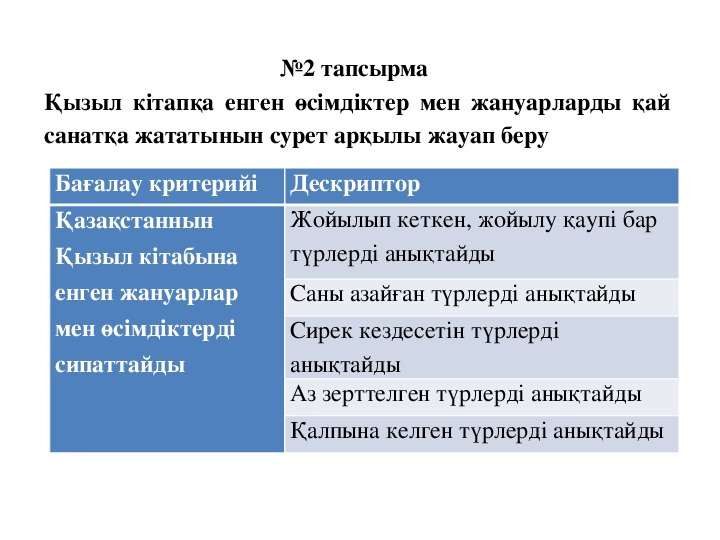 Бағалау критерийі Дескриптор