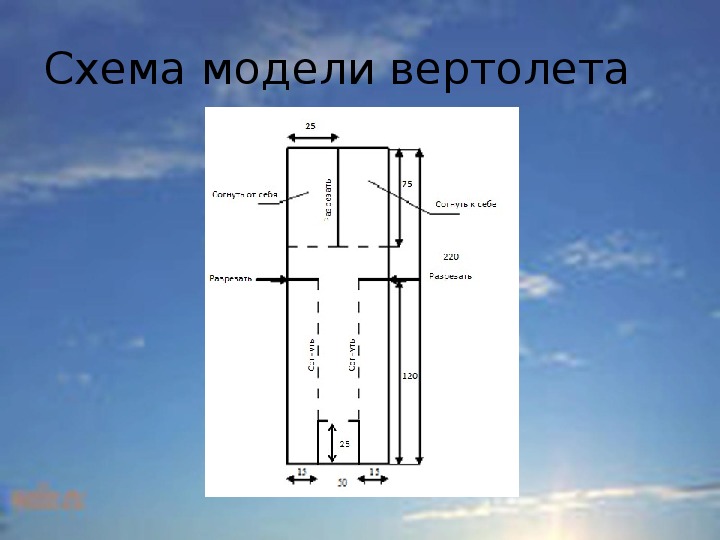 Презентация по физике к уроку "Воздухоплавание". На слайдах описывается тема урока, цель урока и задачи урока. На уроке учениками выполняется практическое задание по изготовлению модели вертолета, на слайде дана схема изготовления. А также на уроке отводится время для выполнения самостоятельной работы. В конце урока делается вывод.На данной презентации, к уроку по физике в 7 классе, размещены тест, тема урока, цель урока и вывод .