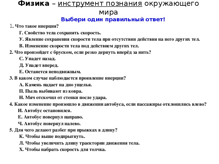 У. Явление сохранения скорости тела при отсутствии действия на него других тел.
