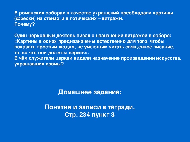 Готический и романский архитектурные стили и их отличия в картинках, готическая и романская скульптура и их отличия, средневековая живопись (витраж, книжная миниатюра, раннее Возрождение Италии (Боттичелли и его картины) - это вы найдете в материалах презентации. Красивые иллюстрации и логические задания.