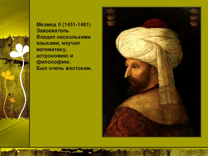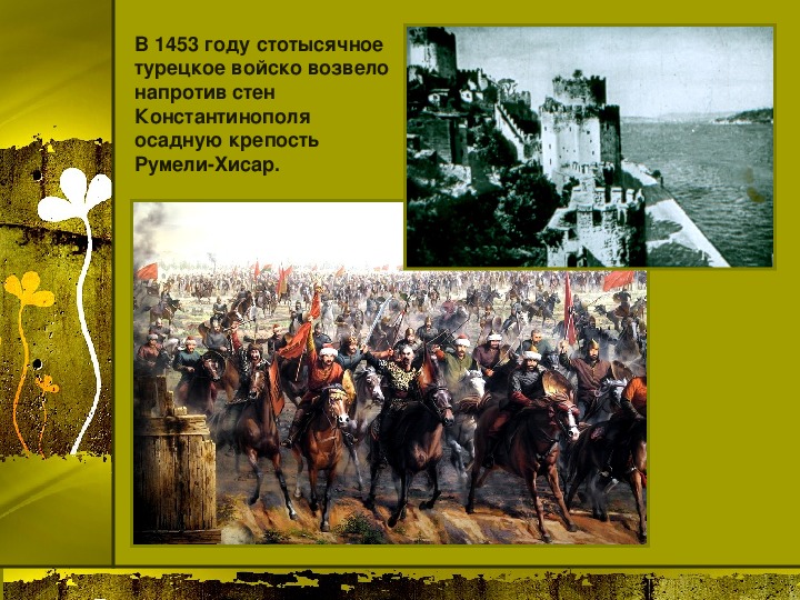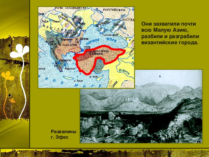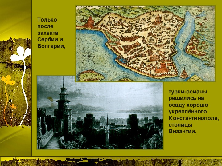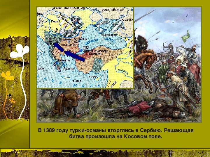 Материалы презентации: государства Балканского полуострова в 14 веке и их ослабление, образование государства турок-османов, захваты турок-османов в Малой Азии, Сербии, Болгарии, Византии, битва на Косовом поле, Милош Обилич, захват Константинополя турками-османами, падение Византийской империи. Много карт, в конце есть логические задания