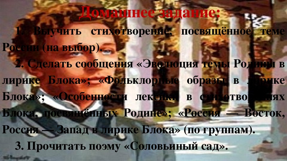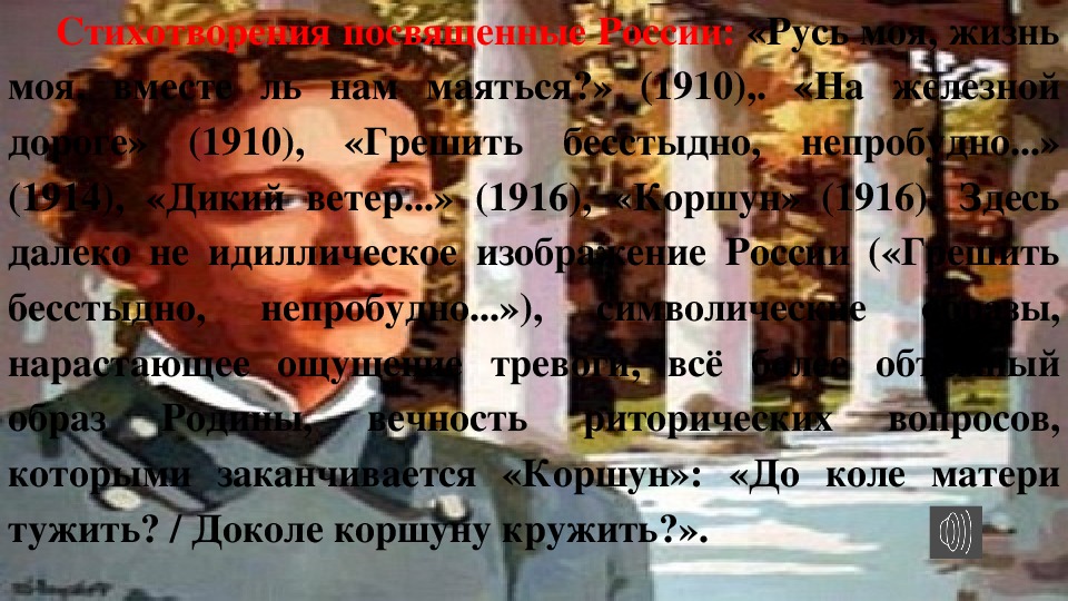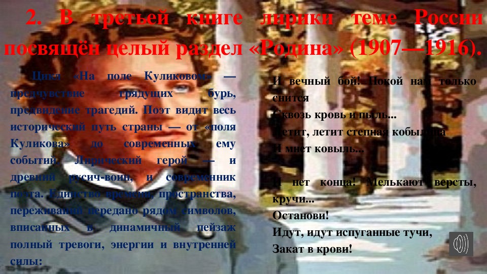 1. Стихотворение «Русь». Первая строфа стихотворения настраивает на