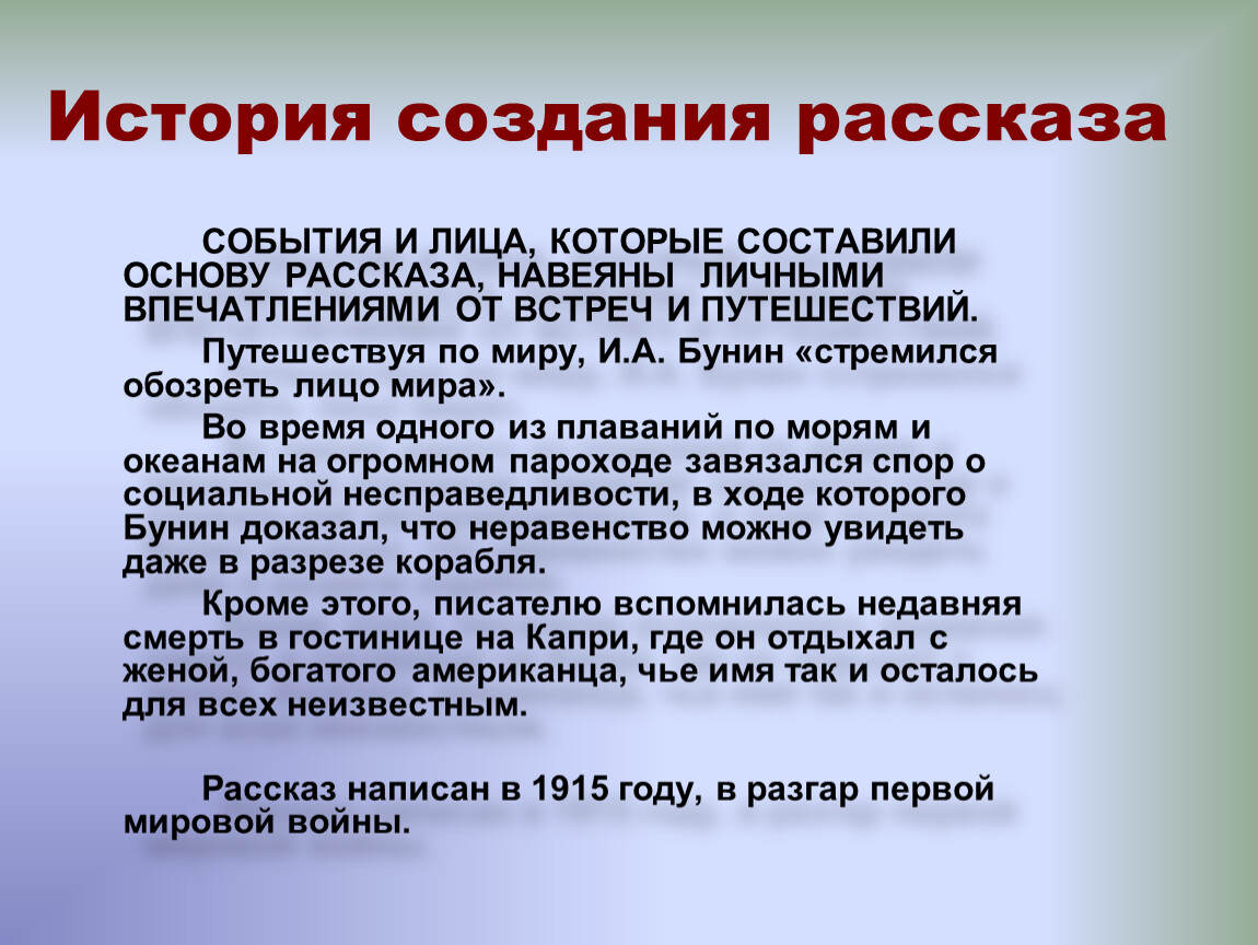 Во время одного из плаваний по морям и океанам на огромном пароходе завязался спор о социальной несправедливости, в ходе которого Бунин доказал, что неравенство можно увидеть даже в разрезе корабля.
