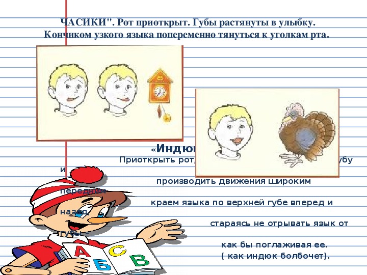 Кончиком узкого языка попеременно тянуться к уголкам рта.