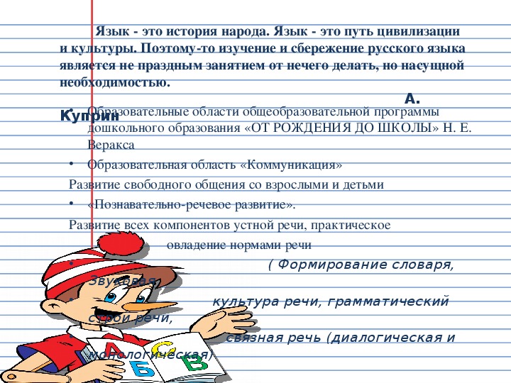 и культуры. Поэтомуто изучение и сбережение русского языка