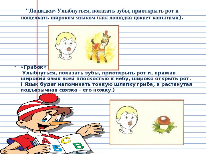 "Лошадка» Улыбнуться, показать зубы, приоткрыть рот и