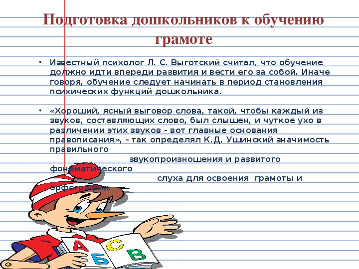 обучения грамоте: приучить глаз и руку ребенка к письму