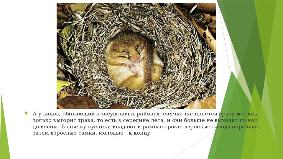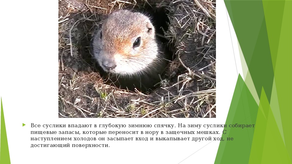 до весны. В спячку суслики впадают в разные сроки: взрослые самцы пораньше,