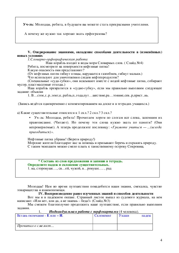 УРОК РУССКОГО ЯЗЫКА В 4 КЛАССЕ