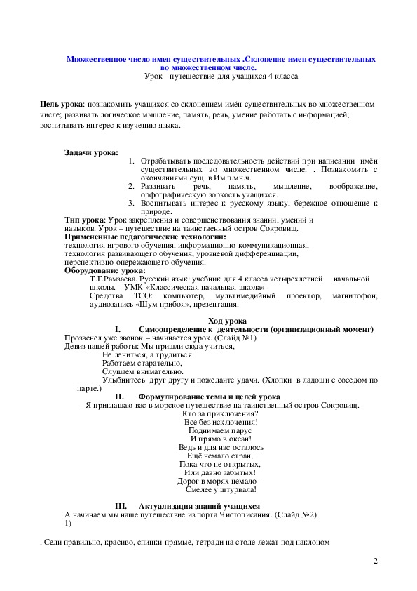 Урок путешествие для учащихся 4 класса