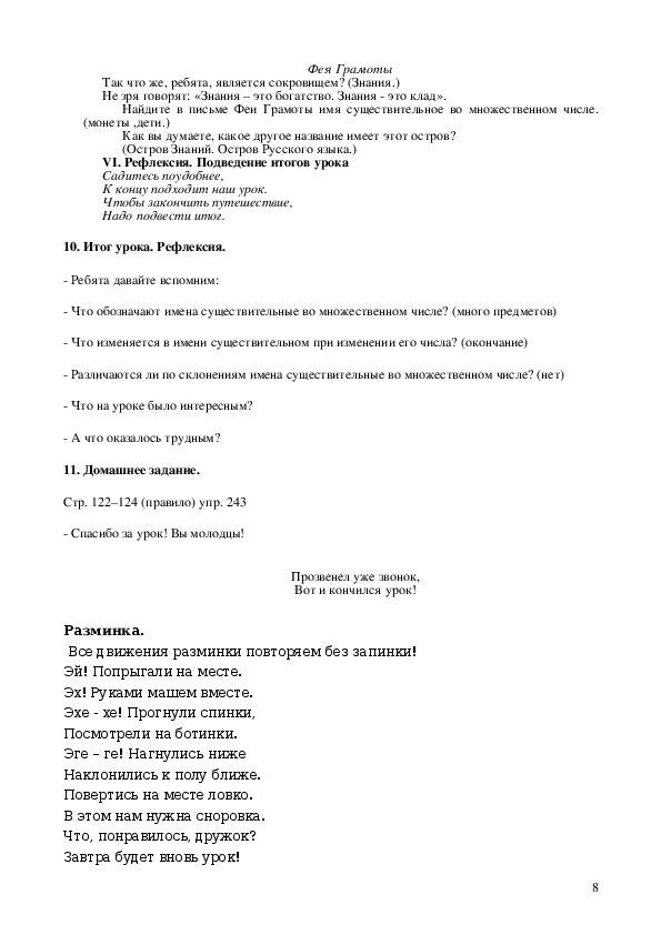 VI. Рефлексия. Подведение итогов урока