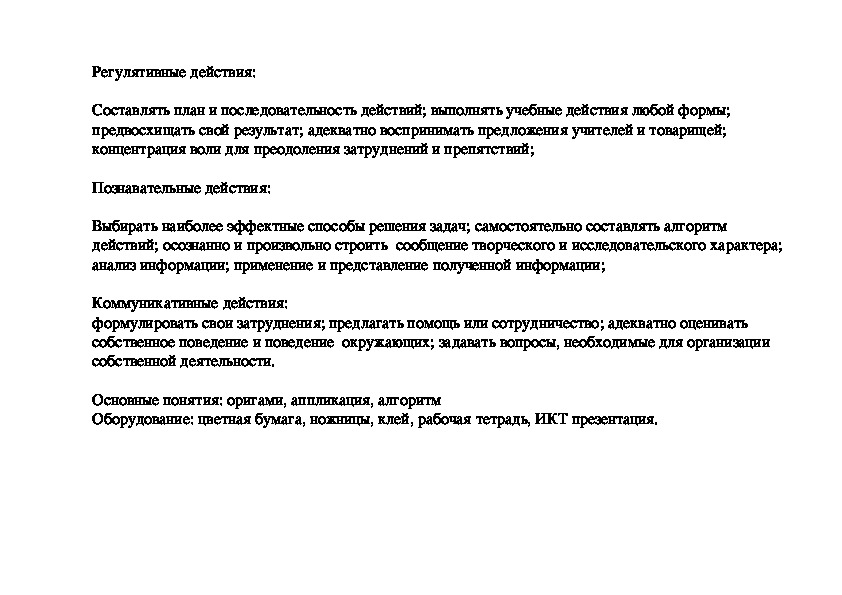Оборудование: цветная бумага, ножницы, клей, рабочая тетрадь, ИКТ презентация.Этап