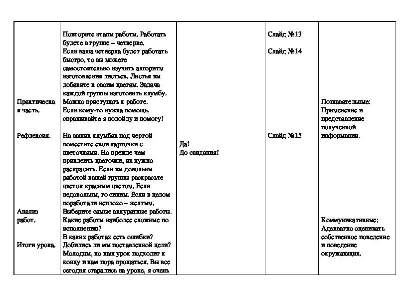 Уважительное отношение к работе одноклассников; доброжелательность, эмоционально