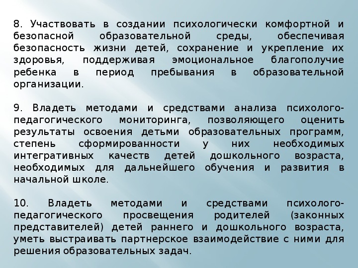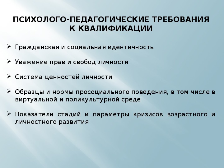 ПСИХОЛОГО-ПЕДАГОГИЧЕСКИЕ ТРЕБОВАНИЯ