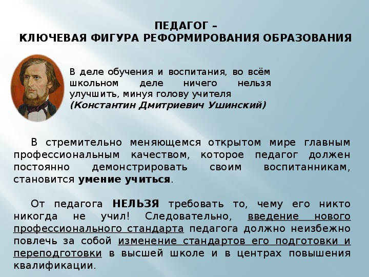 КЛЮЧЕВАЯ ФИГУРА РЕФОРМИРОВАНИЯ ОБРАЗОВАНИЯ