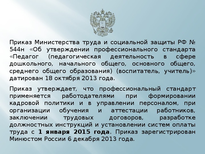 труда с 1 января 2015 года. Приказ зарегистрирован