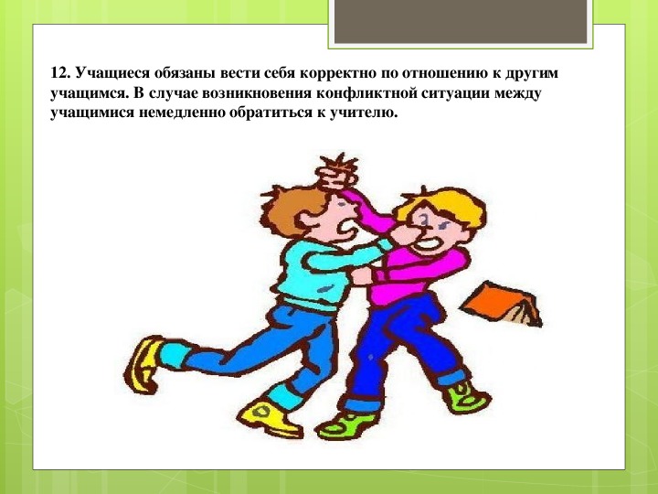 12. Учащиеся обязаны вести себя корректно по отношению к другим