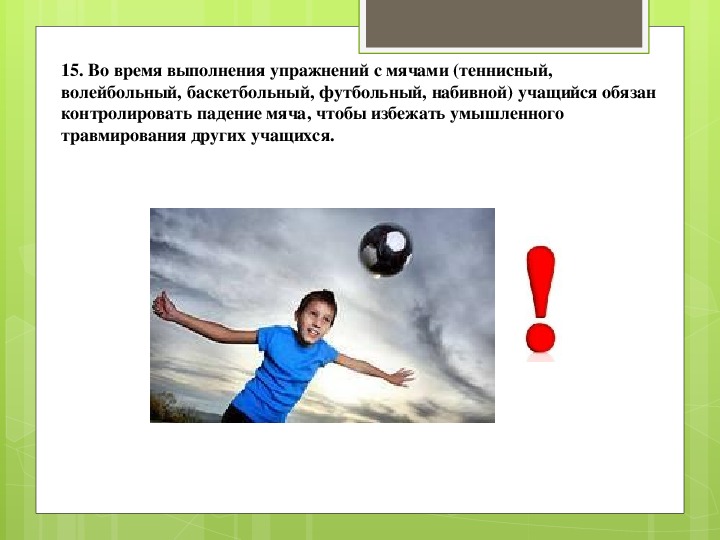 волейбольный, баскетбольный, футбольный, набивной) учащийся обязан