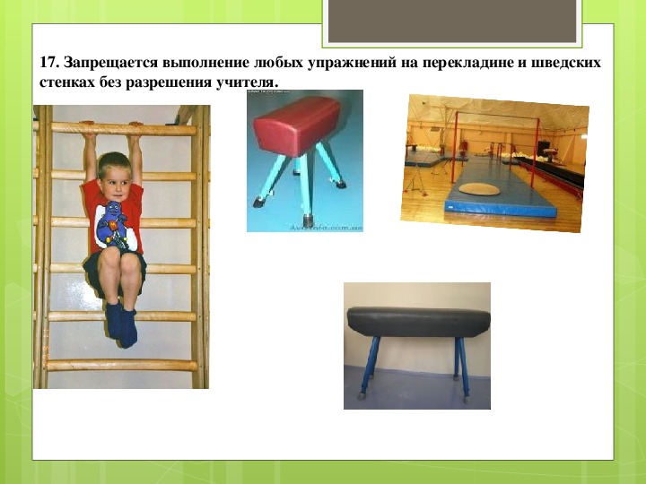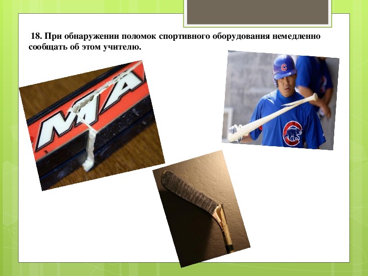 14. Запрещается самостоятельно брать спортивный инвентарь,