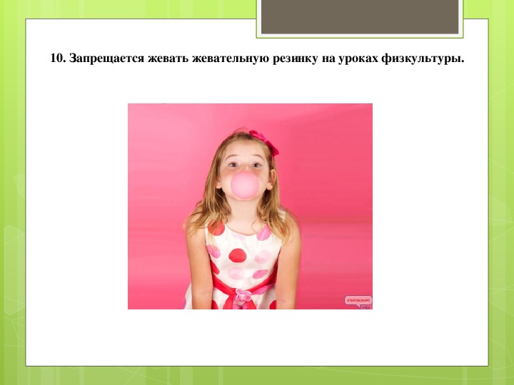 10. Запрещается жевать жевательную резинку на уроках физкультуры.