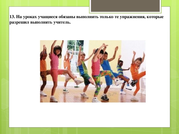 13. На уроках учащиеся обязаны выполнять только те упражнения, которые