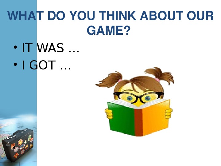 Данная презентация предназначена для проведения лингвострановедческой игры "Путешествуем по Великобритании" в 7-8 классах. Презентация содержит 10 слайдов с названиями и содержанием игры ( в игре 5 раундов), правил игры и вопрос с выражениями-подсказками для проведения рефлексии. Оформление - красочные анимационные картинки.