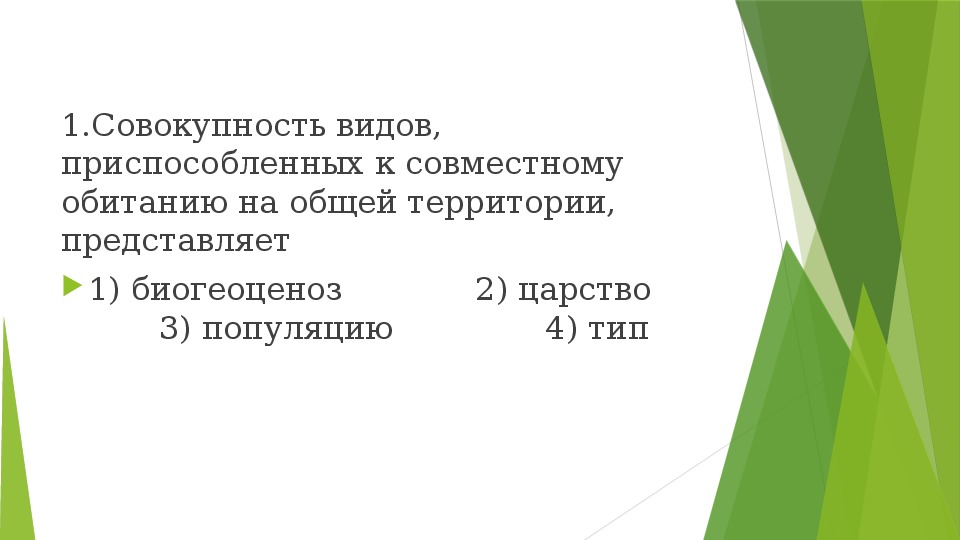 1) биогеоценоз 2) царство