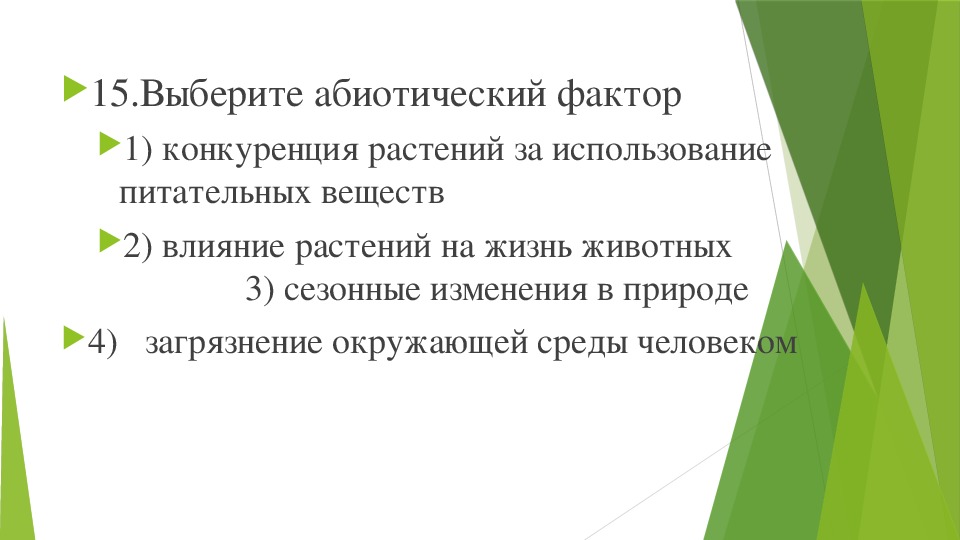 15.Выберите абиотический фактор
