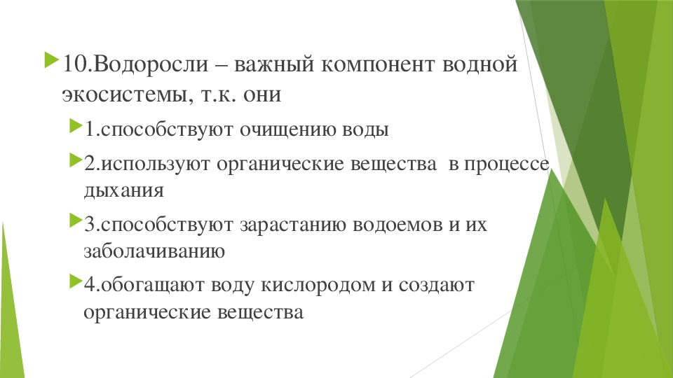 10.Водоросли – важный компонент водной