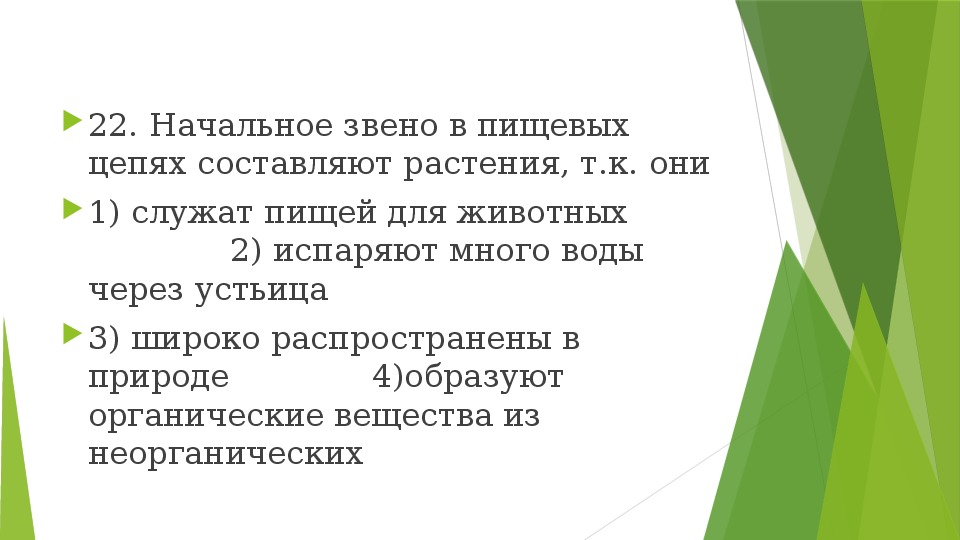 22. Начальное звено в пищевых