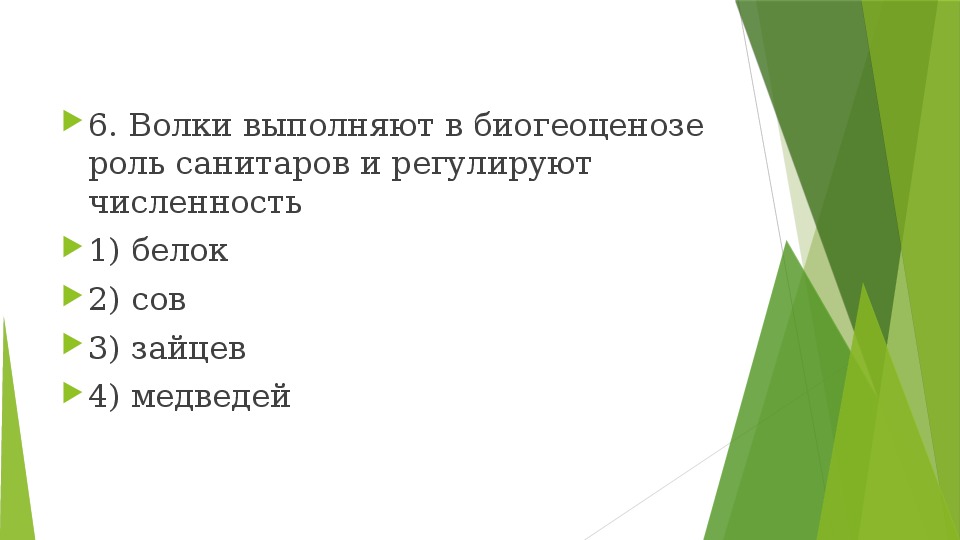 6. Волки выполняют в биогеоценозе