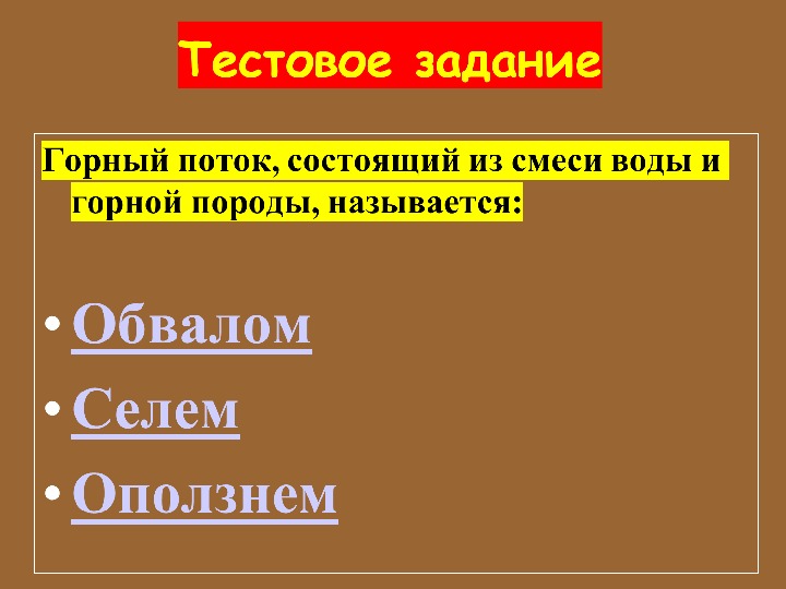 Селевой поток (сель) – горный поток состоящий из смеси воды, грязи и камней