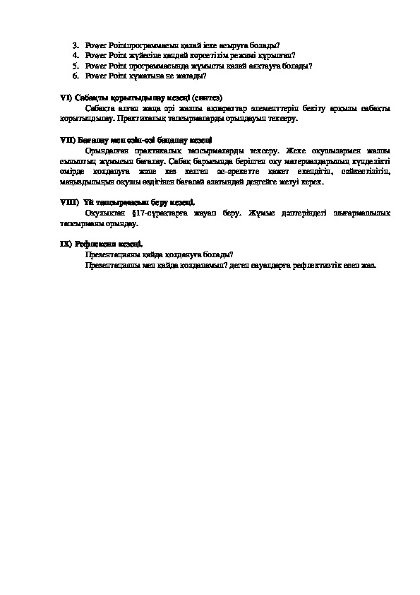 VI) Сабақты қорытыдылау кезеңі (синтез)