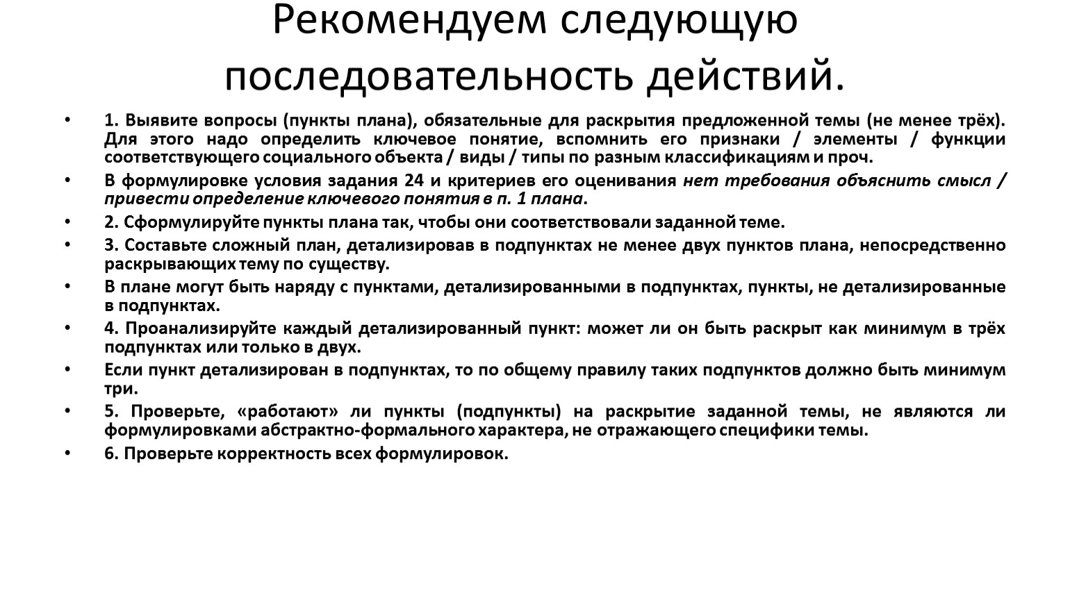 5. Проверьте, «работают» ли пункты (подпункты) на раскрытие заданной темы, не являются ли формулировками абстрактно-формального характера, не отражающего специфики темы.