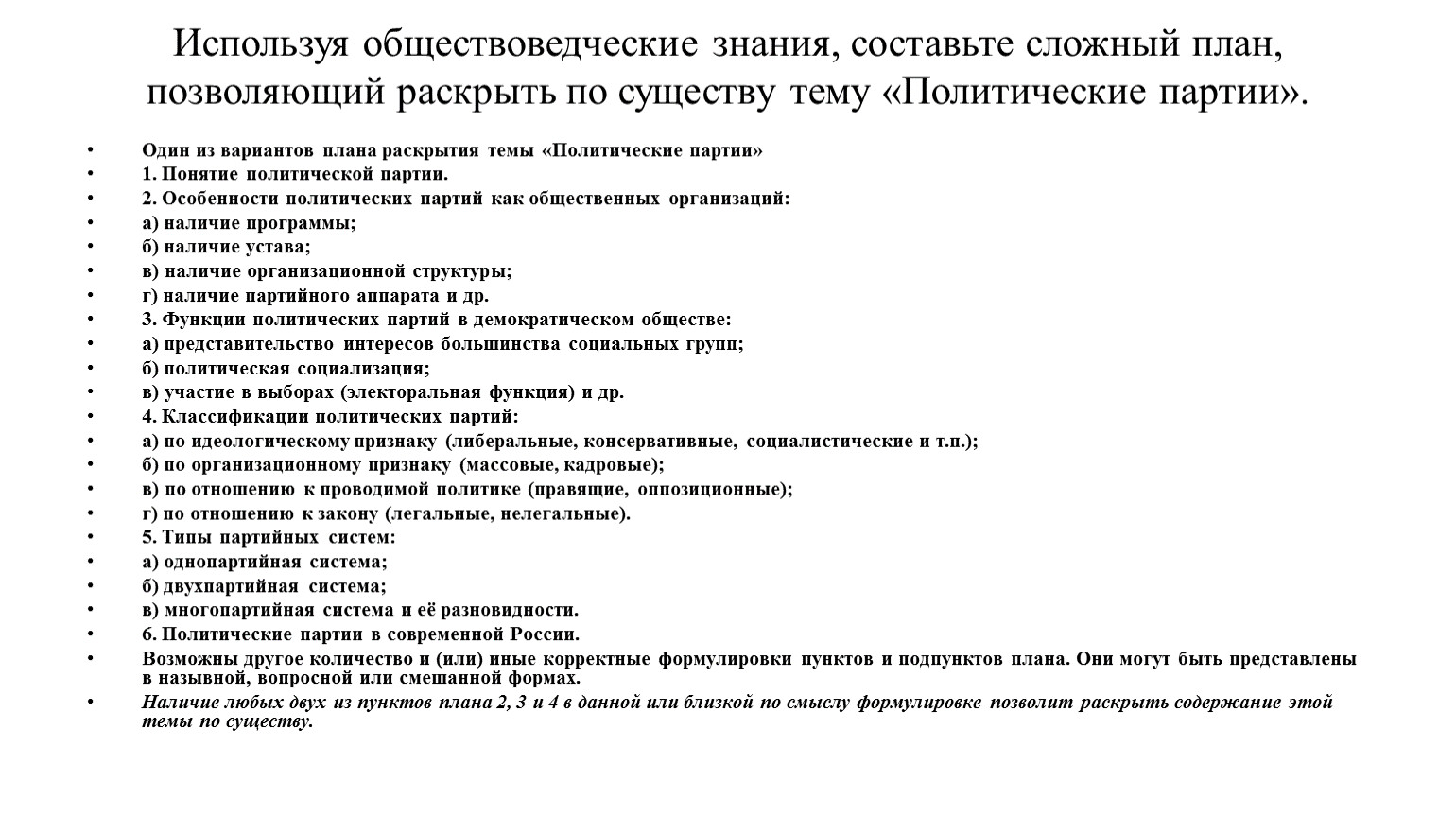 Один из вариантов плана раскрытия темы «Политические партии»