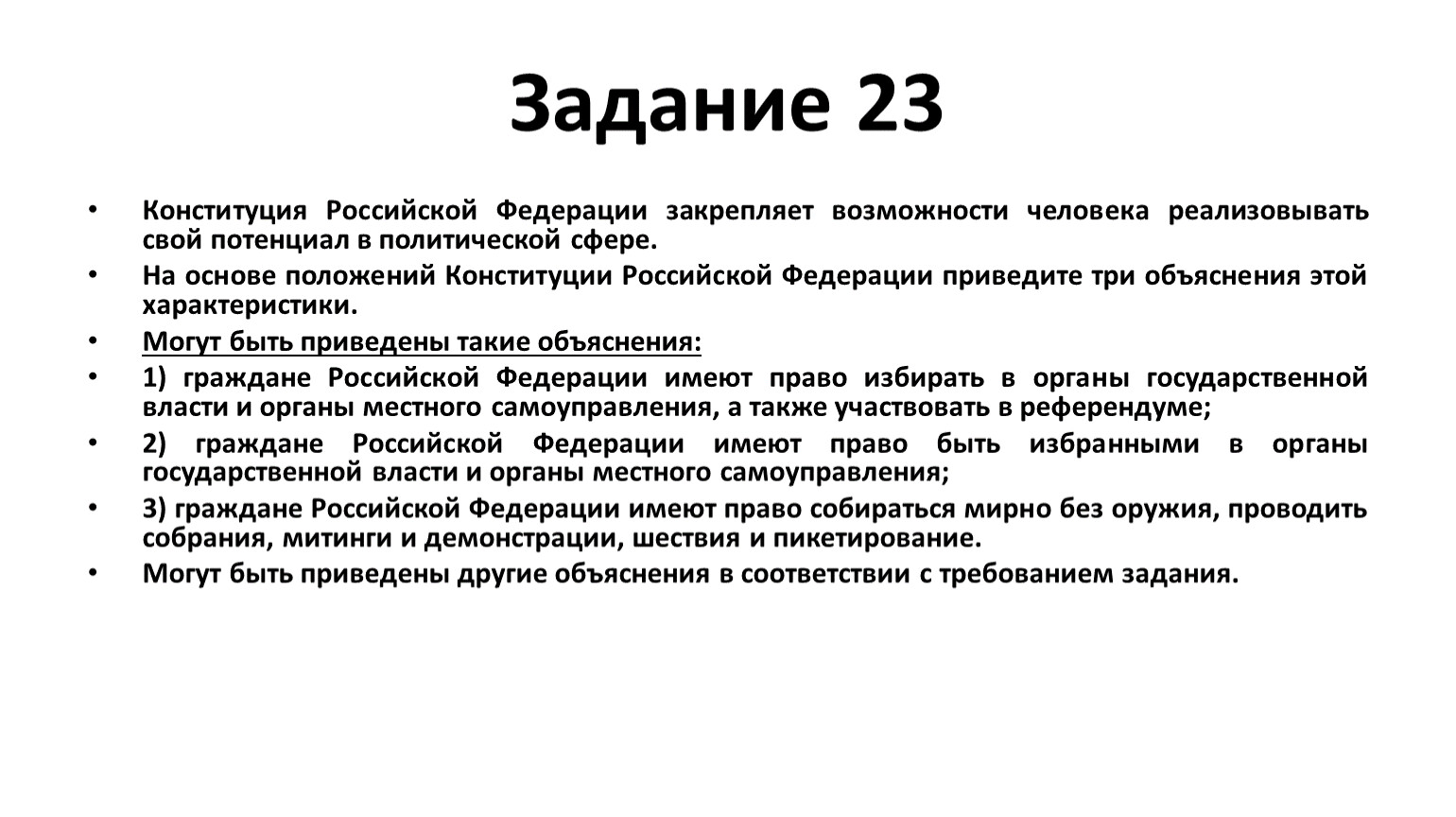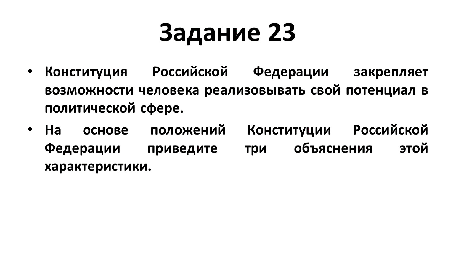 Задания 23, проверявшего знание и понимание ценностей, закрепленных Конституцией