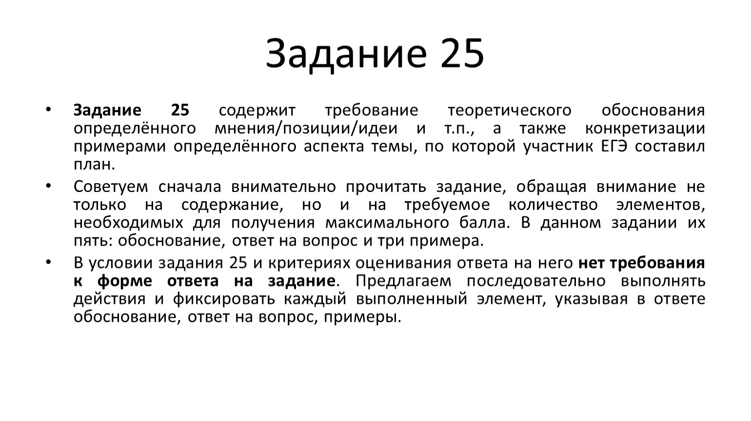 В каждом конкретном задании 25 будут зафиксированы требования к примерам.