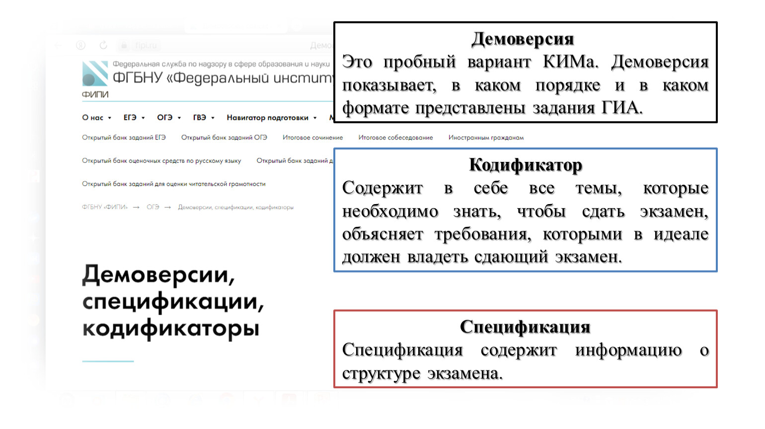 Спецификация содержит информацию о структуре экзамена.